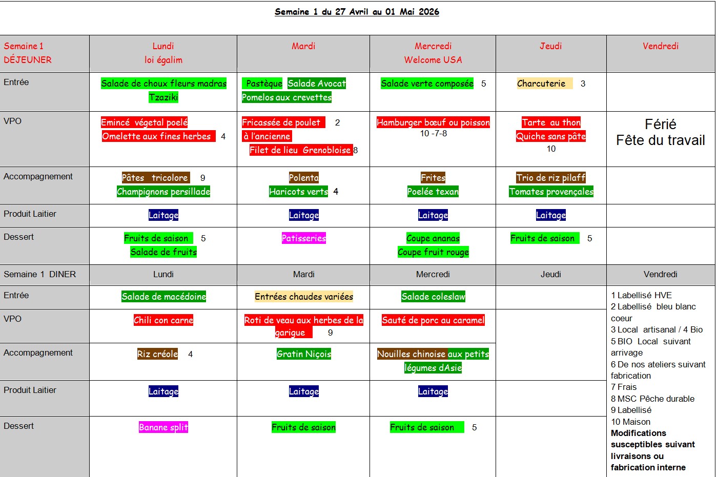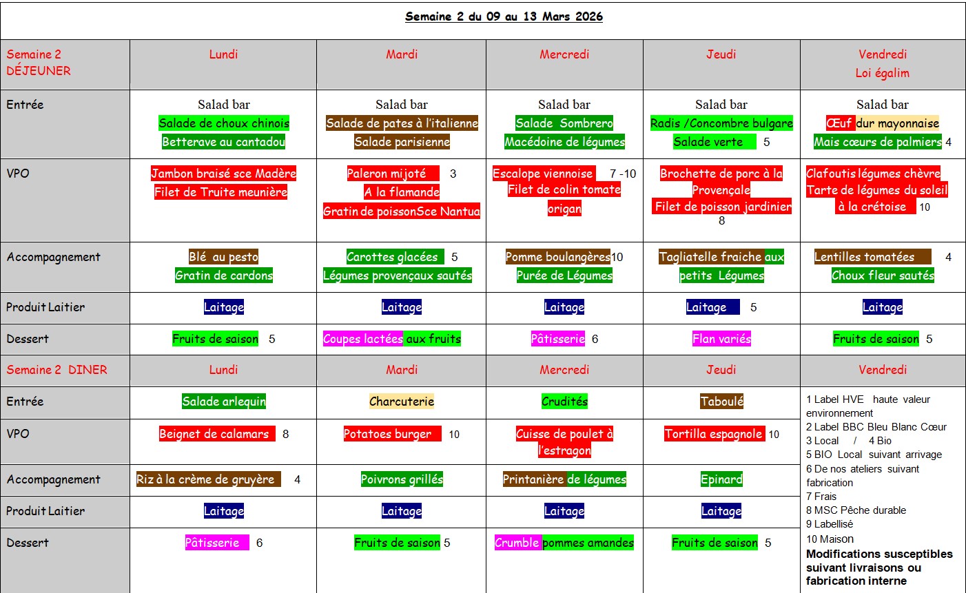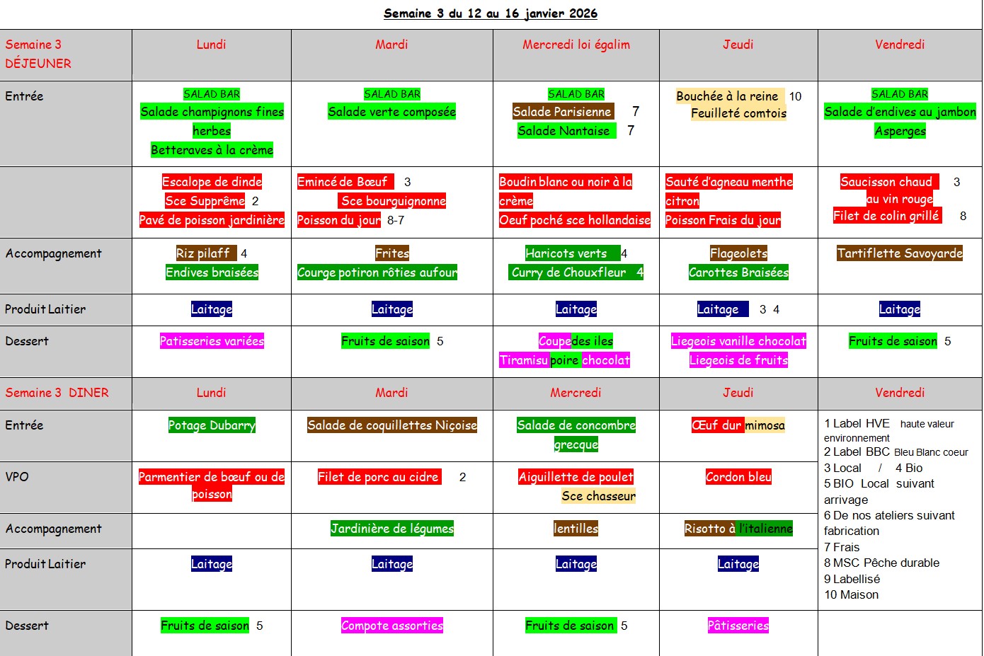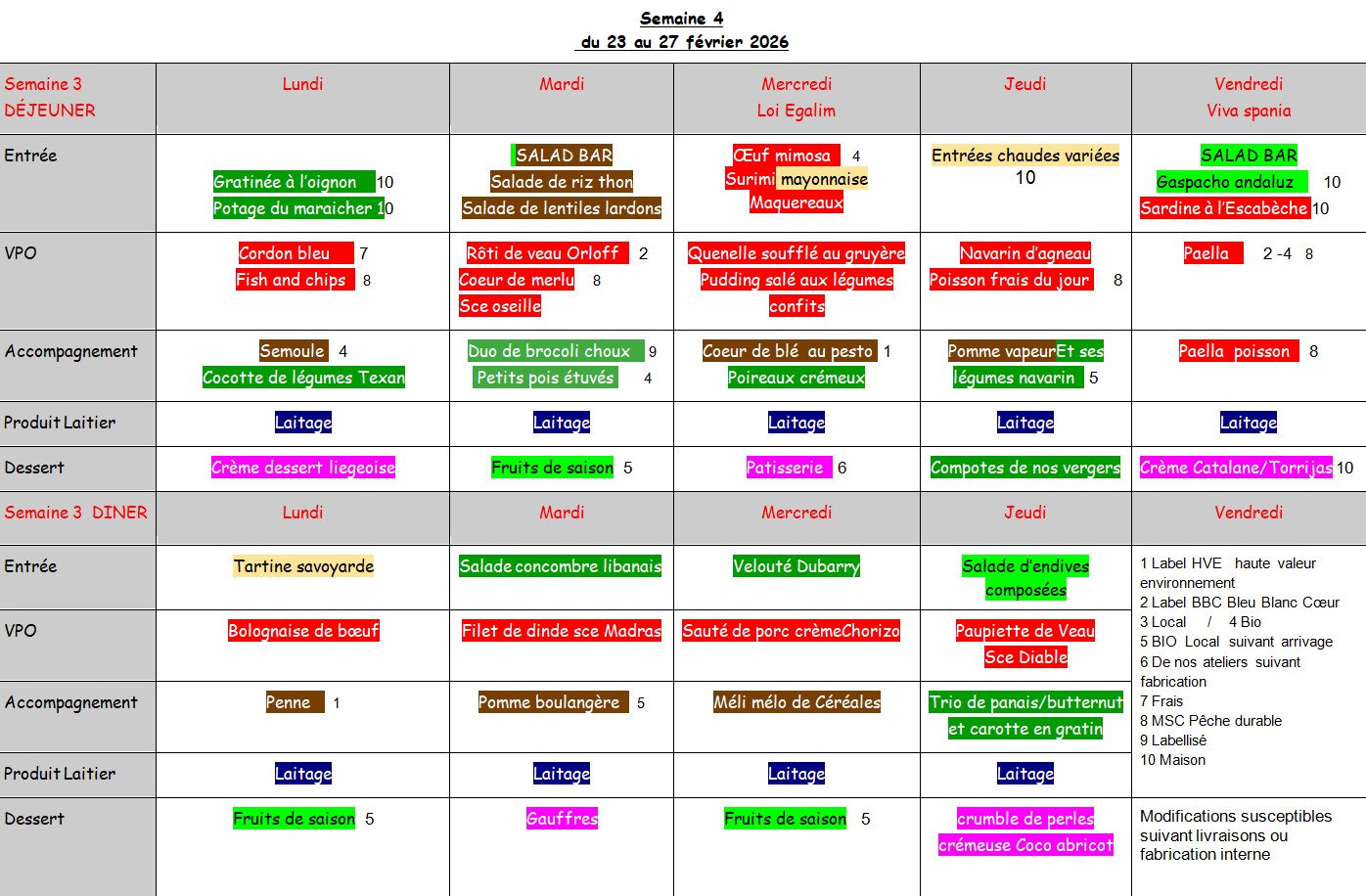 Self : les menus de la semaine