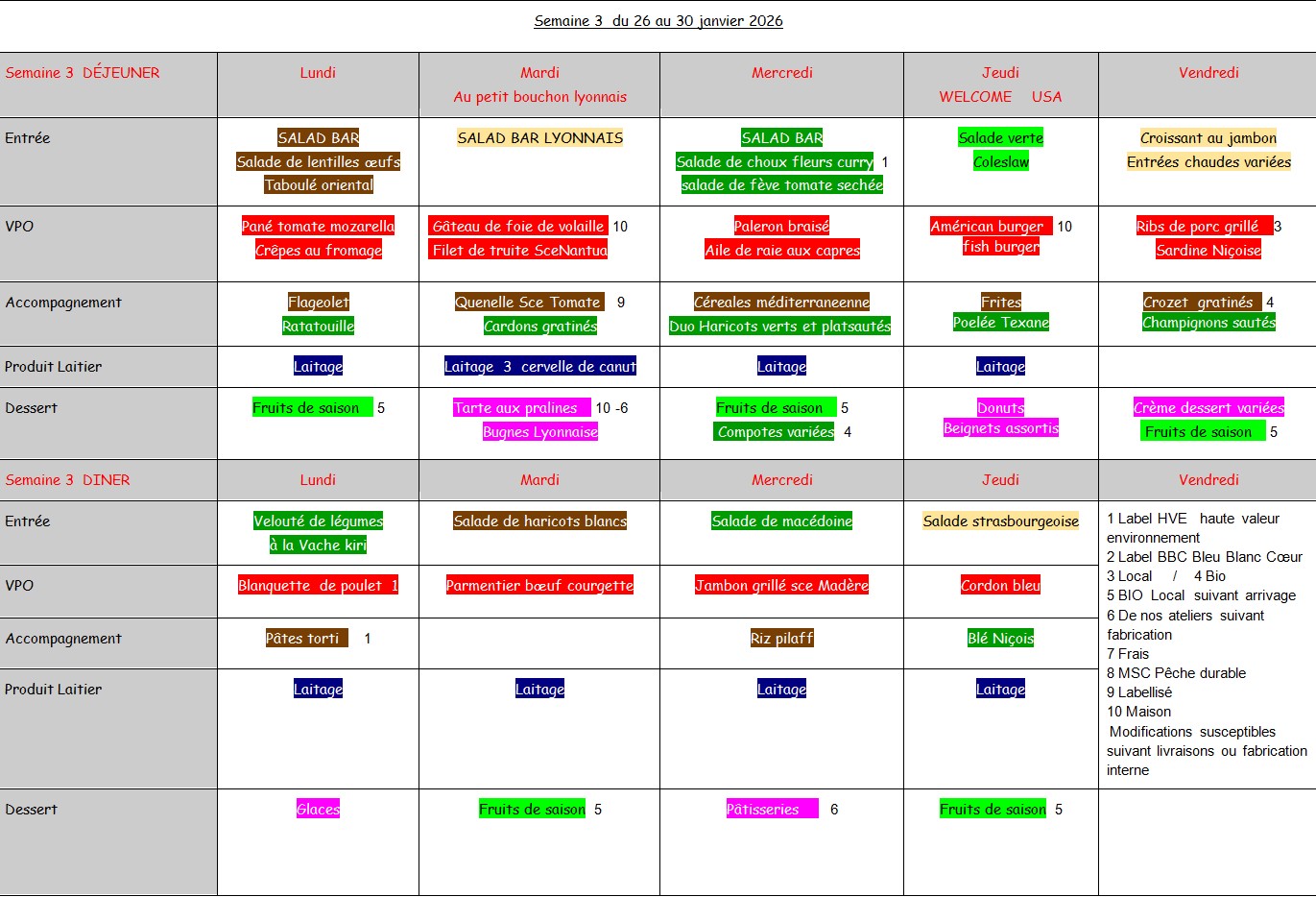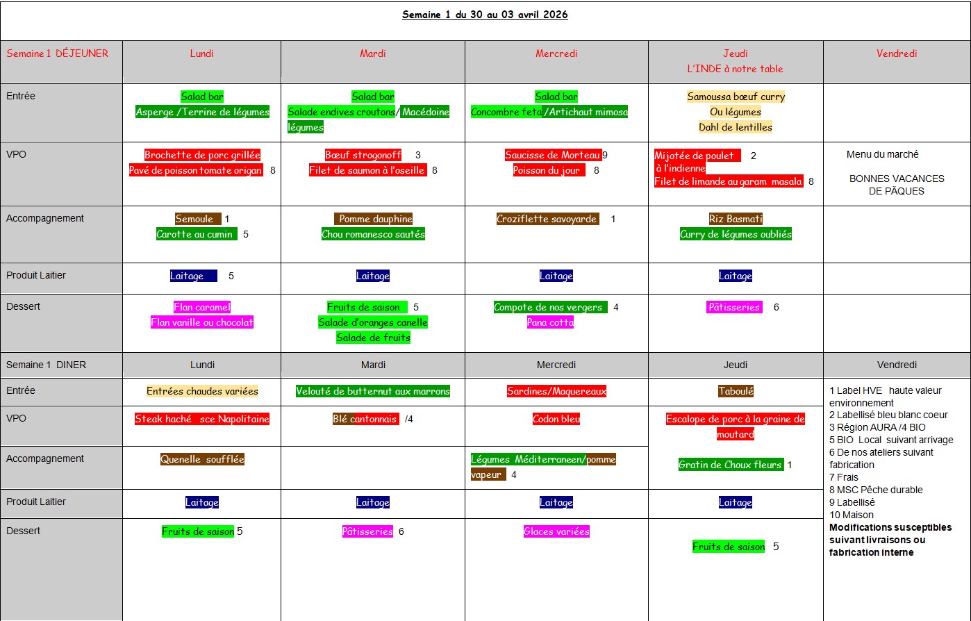 Self : les menus de la semaine