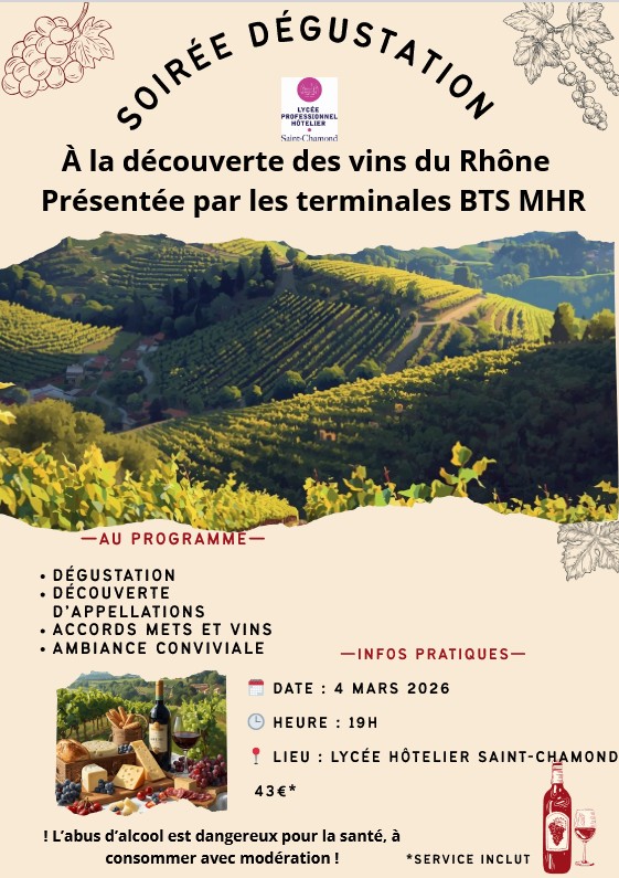 À la découverte des vins du Rhône : soirée dégustation présentée par les terminales BTS MHR le 4 mars à 19h, réservez vos places !